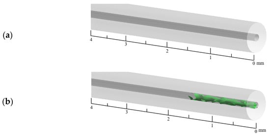 This calculation assumes that the initial temperature of the computational domain is 300 K. The capillary tube is filled with ADN-based liquid propellant and the fluid in the fluid domain is still. Assuming that the properties of the ADN-based liquid propellant are constant. The properties of the ADN-based liquid propellant are given in Table 2. The turbulence model is selected from the standard model. A variable time-step of 10−5~10−6 s and a global Courant number () of unity are used to ensure numerical stability. The numerical details and discretization methods are given in Table 3.