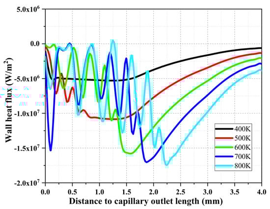 Comparison of wall heat flux in the capillary tube for different heat reflux temperatures.