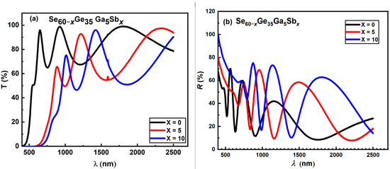 - Abou-Elnour, H.A.; Osman, M.B.S.; Fadel, M.; Shakra, A.M. Investigation of the Optical Properties for Quaternary Se60−xGe35Ga5Sbx (x = 0, 5, and 10) Chalcogenide Glass. Materials 2022, 15, 6403. [Google Scholar] [CrossRef] [PubMed]
