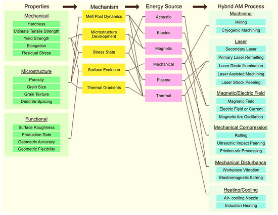 Property—mechanism—energy source—hybrid-AM process framework for hybrid-AM classified by mechanism and energy source utilization. Attending to the scheme, it is easy to understand why such a problem-oriented selection of the sample is possible [46].