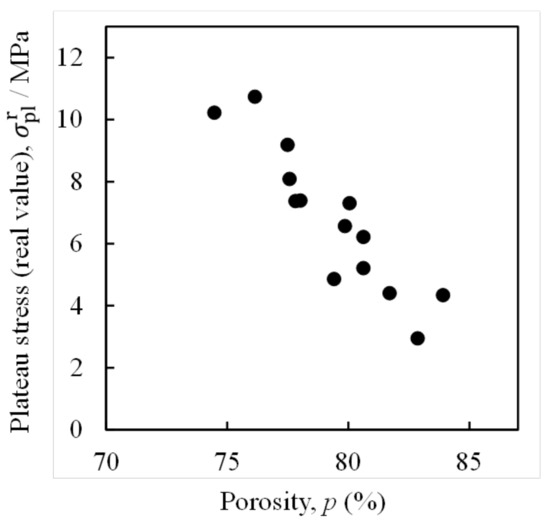 Figure 5. Relationship between porosity p and plateau stress σ pl r of prepared aluminum foam.