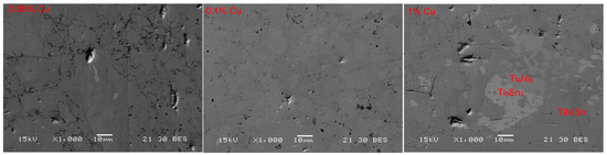 Backscattered SEM image of the 0.05%, 0.1%, and 1% Cu-doped samples.