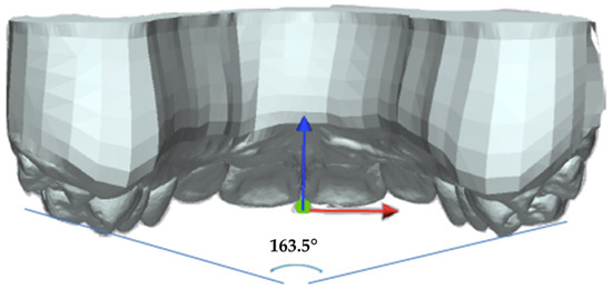 Once the models were superimposed, the plane perpendicular to the occlusal reference was defined to project the vectors that define the molar inclination angle (Figure 2).