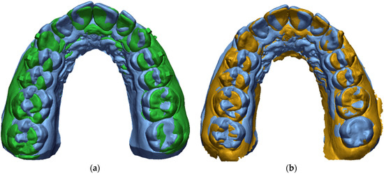 - Adel, S.M.; Vaid, N.R.; El-Harouni, N.; Kassem, H.; Zaher, A.R. Digital Model Superimpositions: Are Different Software Algorithms Equally Accurate in Quantifying Linear Tooth Movements? BMC Oral Health 2022, 22, 103. [Google Scholar] [CrossRef]