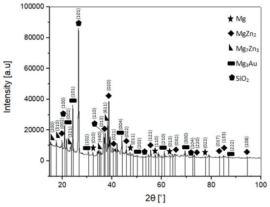 X-ray diffraction pattern of the Mg–Zn–Ca–Au sintered alloy.