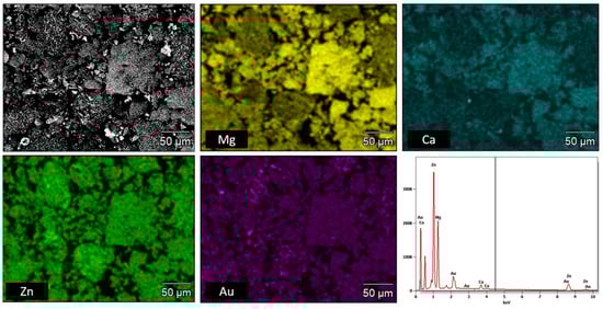 The addition of noble metals to Mg–Zn–Ca alloys improves their properties. Gold has been used for centuries as a biomaterial, although today it has few medical applications. Its largest application area is in jewelry, in dentistry, and in brachytherapy, although new applications may yet appear in the near future by utilization of nanoparticles for drug release and sensor systems. Au is generally considered an inert metal and is more common in, e.g., biosensors because of its electrical conductivity and low solubility. It is also known for its immunity to corrosion []. The cytotoxic effect of Au is negligible as it is commonly used, e.g., in jewelry and even in food. However, salts of Au are known to be of immunological and cytotoxic relevance [].