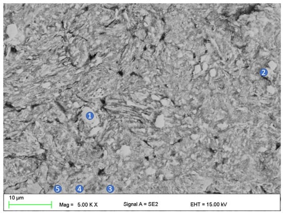 The SEM image featuring MgZn2 phase regions in the sintered sample. The numbers in the image refer to the EDS analysis results which are showcased in Table 5.