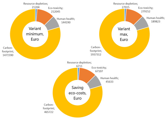 Research results presented in Figure 13 clearly indicate that the factories manufacturing metal products have a lot of opportunities to reduce emissions. Modifying the technology based on the optimization of the die geometry and drawing speed allows for reducing the CO2 emissions by approximately 37%, which annually translates to almost 4000 tons of CO2, which more than justifies actions aimed at reducing energy consumption and environmental impact. Incentives to undertake such actions are steadily increasing environmental tariffs dependent on the annual production volume and manufactured inventory. Table 4, Figure 14 and Figure 15 present the influence manufacturing of wires has on the eco-costs incurred by the consumption of electric energy produced in coal power plants.