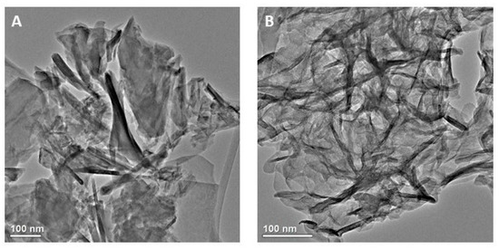 TEM images of the samples: (A) 0% Zn and (B) 10% Zn.