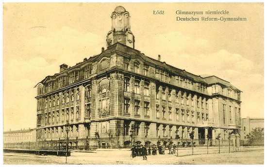 - Available online: https://baedekerlodz.blogspot.com/search?q=NIEMIECKIE+GIMNAZJUM+REFORMOWANE (accessed on 20 February 2022).