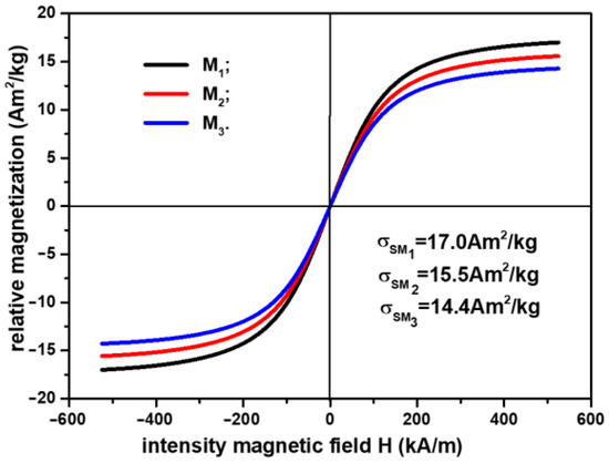 From Figure 3, it can be observed that the relative saturation magnetization is strongly influenced by the component elements of the membranes . By increasing the amount of SmP microparticles, the weight of the magnetizable phase is decreased, as shown in Table 3. Thus, compared with , where the relative saturation magnetization is the relative saturation magnetization decreased by about 9% for and about 16% for .