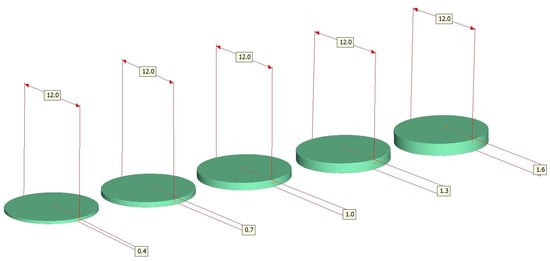 The specimens were adjusted to the final thicknesses by grinding in an automatic polishing machine (Abramin; Struers) under controlled conditions with water cooling (MD Rondo; Struers; 40 and 20 µm grid) and subsequently polished with a polishing wheel (MD Largo; Struers) in combination with diamond suspensions (DP-Suspension M; Struers) of different grit sizes (9, 3, and 1 µm). Grinding and polishing were performed on both planar sides of the specimens, resulting in final thicknesses of 0.4, 0.7, 1.0, 1.3, and 1.6 mm, after finishing and polishing with a maximum admissible dimensional error of ±0.05 mm (Figure 1 and Figure 2). The thickness measurements were assessed using a micrometer screw (Mitotoyu IP65, Tokyo, Japan; accuracy: ±1µm) at the center of the specimens and at their edges in the sectors 0°, 90°, 180°, and 270°. After polishing, all specimens were cleaned in an ultrasonic cleaning unit (T-14; L & R, Kearney, NJ, USA).
