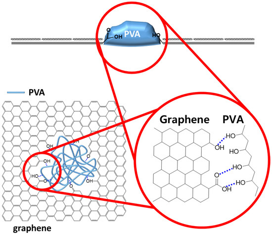 Scheme of blocking graphene defects with PVA by forming hydrogen bonding.