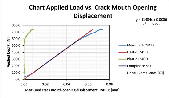 Crack mouth opening displacement (CMOD)-crack growth/force curves were generated for SENB specimens subjected to bending, as shown in Figure 6.