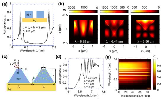 - Zhao, B.; Zhang, Z.M. Perfect mid-infrared absorption by hybrid phonon-plasmon polaritons in hBN/metal-grating anisotropic structures. Int. J. Heat Mass Transf. 2017, 106, 1025–1034. [Google Scholar] [CrossRef]