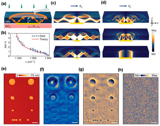 - Dai, S.; Tymchenko, M.; Xu, Z.-Q.; Tran, T.T.; Yang, Y.; Ma, Q.; Watanabe, K.; Taniguchi, T.; Jarillo-Herrero, P.; Aharonovich, I.; et al. Internal Nanostructure Diagnosis with Hyperbolic Phonon Polaritons in Hexagonal Boron Nitride. Nano Lett. 2018, 18, 5205–5210. [Google Scholar] [CrossRef]