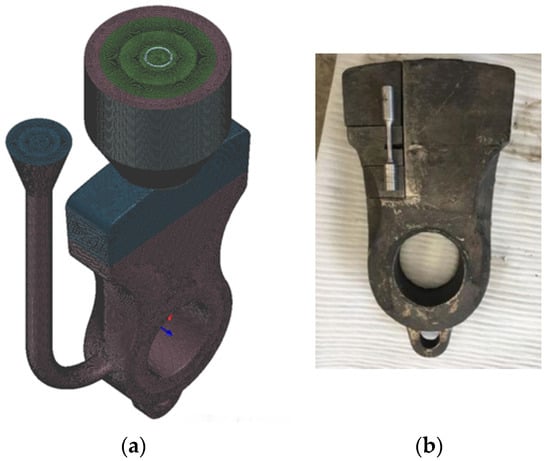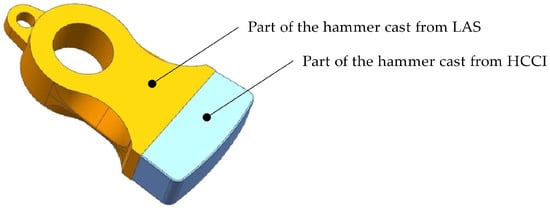 (a) Horizontal–vertical casting modeling, and (b) a typical bimetallic hammerhead.