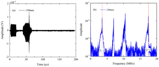 The processed time-domain signal (a) of the second mode triplet at 150 mm and its frequency spectra (b).