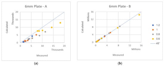 B for each plate were both theoretically calculated using Equations (2) and (6), respectively, and they were also found from the graphs drawn using Equation (1). A comparison of the theoretically calculated