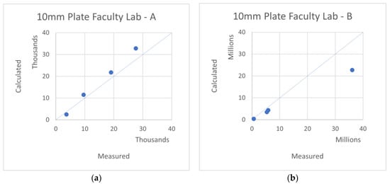 Note that the last plate test (10 mm Plate Faculty Lab) was performed more recently, under a better-controlled environment, and therefore, it presents a more accurate agreement.