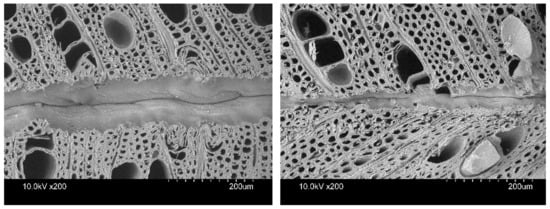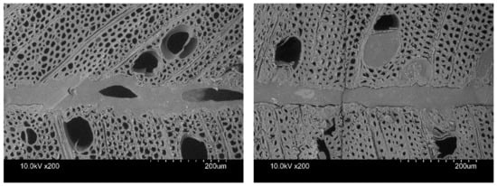 Some researchers found no notable difference between adhesive penetration in untreated and acetylated wood [39], while others reported poorer adhesive penetration after acetylation [46,47].