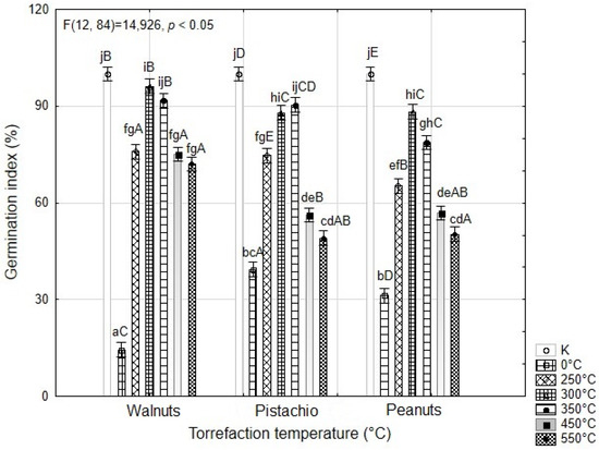 The germination Index, a measure of the toxicity of biochar, was calculated using the following equation: