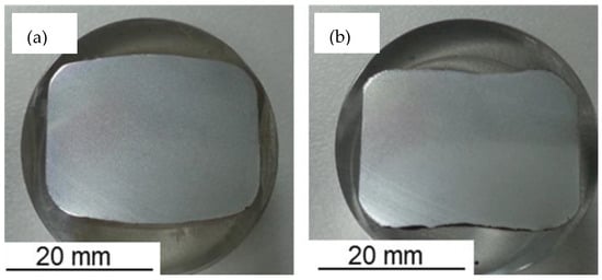 To study the significance of a roll pass design modification at stand 14 by changing the rolls from grooved into grooveless (as shown in Figure 3a,b), samples were taken out from the rolled strip after stand 14 and before entering the first slitting former pass at stand 15 which have dog bone shape (Figure 3c). The samples (15 mm long) were cut off, mounted in an epoxy mold, and grinded using SiC emery papers till grade 1000.