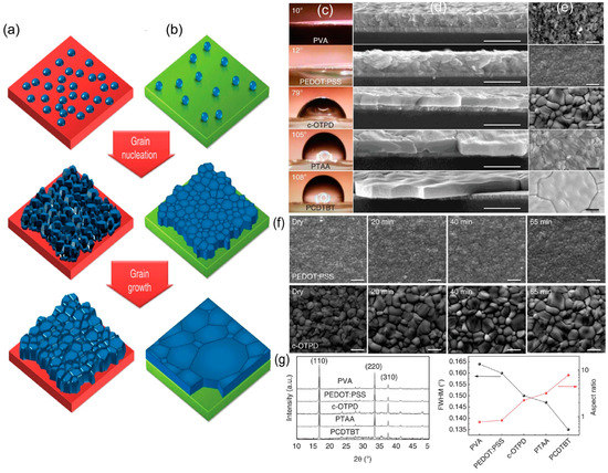 - Kumar, J.; Srivastava, P.; Bag, M. Advanced Strategies to Tailor the Nucleation and Crystal Growth in Hybrid Halide Perovskite Thin Films. Front. Chem. 2022, 10, 330. [Google Scholar] [CrossRef]