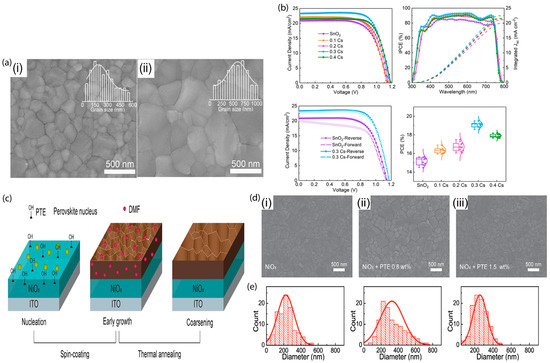 - Li, T.; Rui, Y.; Wang, X.; Shi, J.; Wang, Y.; Yang, J.; Zhang, Q. Grain Size and Interface Modification via Cesium Carbonate Post-Treatment for Efficient SnO2-Based Planar Perovskite Solar Cells. ACS Appl. Energy Mater. 2021, 4, 7002–7011. [Google Scholar] [CrossRef]