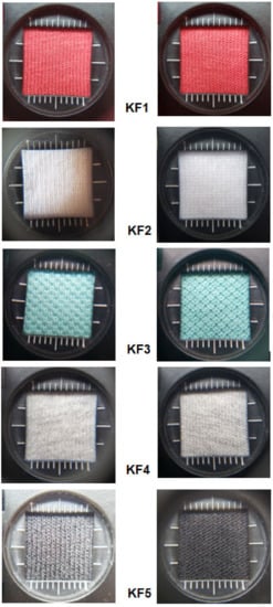 In the presented investigations, the knitted fabrics were stretched to 15%. According to the device instruction manual [], the procedure of stretching was the following: