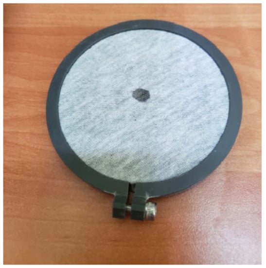 It should be mentioned here that great variation in the results was observed for fabrics in the unstretched and stretched form. This phenomenon has been observed in our previous investigations too [,]. It can be explained by the fact that the testing liquid is dropped on the central region of the MMT sensor. Placing the samples on the bottom sensor is random. This means that different elements of the fabric structure can be positioned in the central point of the specimen measured, i.e., in the point where the liquid is applied. If a drop hits the open pores between the yarns, it can fall directly onto the bottom surface of the sample due to gravity. In such a case, the wetted radius is very small (Figure 4) and some amount of testing solution travels directly to the bottom sensor and remains on it. In such a situation, the amount of liquid absorbed and spread on the fabric surface is lower than that provided during the test. Unfortunately, it is impossible to determine the share (amount) of liquid in/on the measured fabric’s surface and the liquid on the bottom sensor’s surface. We can only observe the message on the PC screen indicating that the bottom sensor is wet and should be dried.
