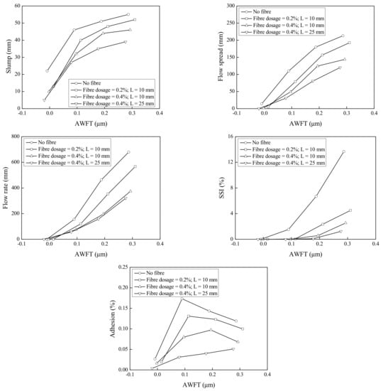 - Basically, the AWFT possesses positive influences on the workability and fluidity, negative impacts on the cohesiveness, and positive or negative effects on the adhesiveness depending on the AWFT;