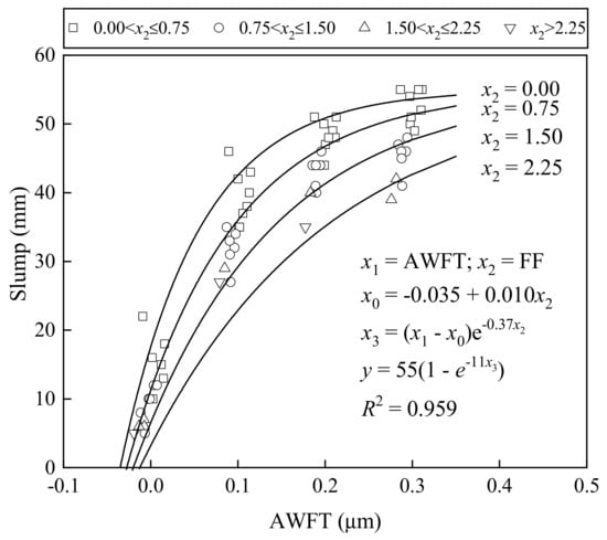 - Correlations of the slump, flow spread, flow rate, SSI, and adhesion with both the AWFT and FF by means of a multi-variable regression analysis yielded a rather high coefficient of determination or the R2 values, suggesting that the AWFT and FF are together the key parameters governing the fresh behaviours of BFRM;