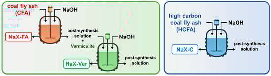 The schematic diagram for zeolite NaX–FA and zeolite composites NaX–Ver and NaX–C syntheses.