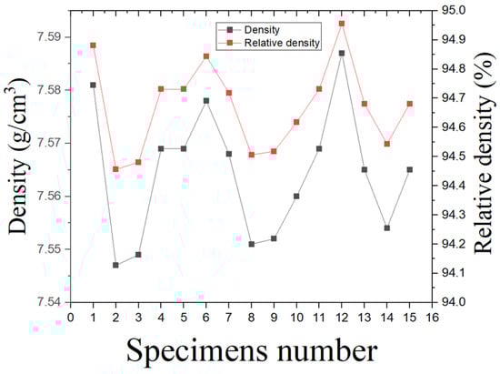 - The average density of MIM SS 316L specimens is 7.56 g/cm3. The relative density measured was 94.68% of the theoretical density.