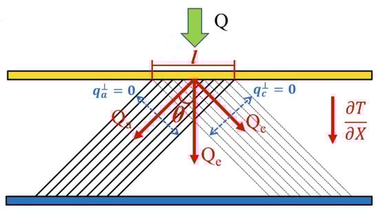 The a-axis and c-axis of anisotropic graphite are the two main directions of heat transfer. Under one-dimensional steady heat transfer, the heat transfer in the direction of heat flow can be regarded as the vector sum of the heat transfer of the a-axis and the c-axis. Figure 2 shows the conversion of thermal conductivity in non-main direction. Assume that heat is only transferred along the a-axis and c-axis, and the direction perpendicular to a-axis or c-axis is adiabatic. Then, the temperature gradients along the a-axis and c-axis are and , respectively. According to Equations (1)–(4), the solution of effective thermal conductivity along the z-axis of WCS was determined.