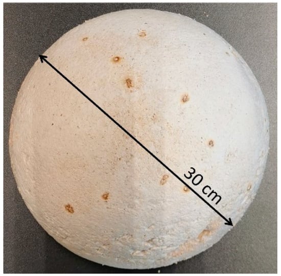 It is worth noting that there is no single method of MBCs production (the 2022 review includes an extensive comparative analysis of the applied production conditions based on 92 research articles []). Figure 1 presents the samples used for consumer testing in studies A and B. They were made of MBCs and had a hemispherical (dome) shape with a diameter of 30 cm, which allowed the surface to be observed from different angles. The chosen shape highlighted well the texture of the material and changes in Chiaroscuro through varying shell gradients and defined edges.