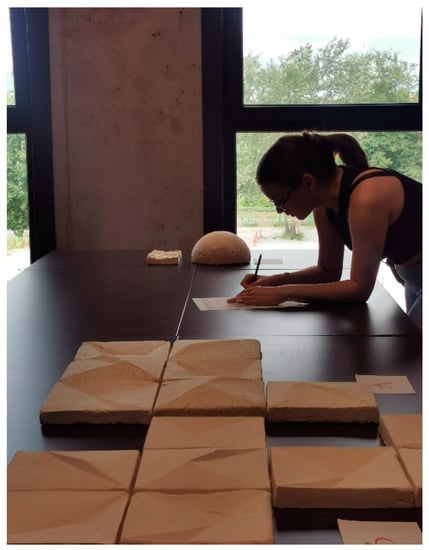 - Test C: comparing the MBC wall cladding panels with reference panels made of chamotte clay (pairwise comparisons) (methodology based on []).