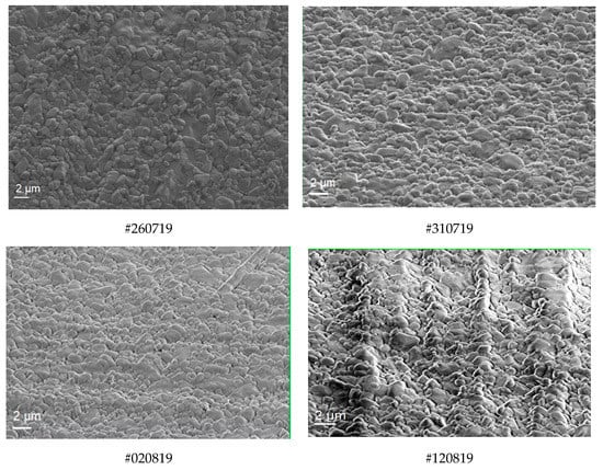 SEM images of samples #260719, #310719, #020819, and #120819.