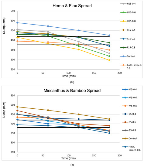 The slump value of cement composites is an essential factor in measuring the workability of a fiber cement mortar, in which the following factors take an active role: the water–cement ratio, properties of the material, mixing methods, dosages, and admixtures.