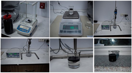This study produced epoxy matrix carbon fiber reinforced composite plates by symmetrically laying three layers of fabric on the mold using the vacuum infusing method and sending resin into it. While producing the composite plates, they were left to cure at room temperature for 24 h. The same method is used for nanoparticles consisting of three layers of carbon fiber fabric. At this stage, MWCNTs were incorporated into the epoxy matrix at a rate of 0.3% by weight. In the first step, the powder of CNTs was mixed with epoxy resin using a mechanical stirrer for 15 min. In the second step, an ultrasonic homogenization device was used after using a mechanical stirrer. The dispersion process was carried out with an ultrasonic homogenizer device at a power rate of 15% and for 15 min (Figure 1). This step was applied to achieve the best possible dispersion of the powder of carbon nanotubes in the epoxy resin. Before starting the second step again, the mixture was kept in a cooled ultrasonic bath for 15 min to lower the temperature of the nano-reinforced resin resulting from the kinetic energy of the particles produced by the ultrasonic mixer tip. In the final step, the nano-reinforced resin was injected into the carbon fiber fabric by a vacuum infusion process (Figure 2).