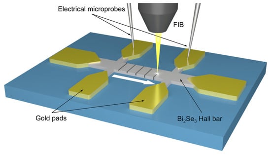 - Fukui, N.; Hobara, R.; Hirahara, T.; Hasegawa, S.; Miyatake, Y.; Mizuno, H.; Sasaki, T.; Nagamura, T. In situ microfabrication and measurements of Bi2Se3 ultrathin films in a multichamber system with a focused ion beam, molecular beam epitaxy, and four-tip scanning tunneling microscope. E-J. Surf. Sci. Nanotechnol. 2014, 12, 423–430. [Google Scholar] [CrossRef]