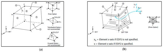 Graphical representation of the homogeneous (a) and the layered (b) version of SOLID278 and SOLID185 elements of the APDL© software [31].