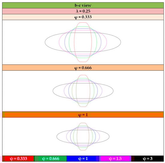 Graphical representation of the b–c view of tank configurations with λ = 0.25.