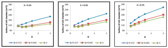Distribution of the inner aluminum shell surface as a function of the ratios λ, φ and ψ.