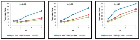 In this section a set of different tank designs are examined, which result from different values of the geometric ratios λ, φ and ψ, which have already been explained in Section 2. In order to be able to compare the behavior of the different tank configurations, a common volume of the inner tank shell is selected for all of them, equal to 100 m3. By the three ratios λ, φ and ψ, and the volume of 100 m3, the characteristic dimensions a, b, c, ls and lt mentioned in Section 2 are calculated.