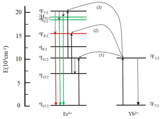 Schematic diagram of the energy-transfer process of the Na3ScF6: Yb3+, Er3+ system.
