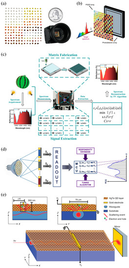 - Bao, J.; Bawendi, M.G. A Colloidal Quantum Dot Spectrometer. Nature 2015, 523, 67–70. [Google Scholar] [CrossRef]