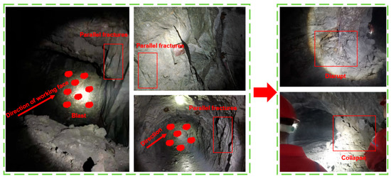 - Qiu, J.; Li, D.; Li, X.; Zhu, Q. Numerical Investigation on the Stress Evolution and Failure Behavior for Deep Roadway under Blasting Disturbance. Soil Dyn. Earthq. Eng. 2020, 137, 106278. [Google Scholar] [CrossRef]