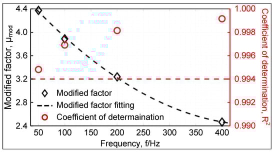 The relationship between the modified factor and the frequency can be obtained by fitting the quadratic function to satisfy Equation (6).